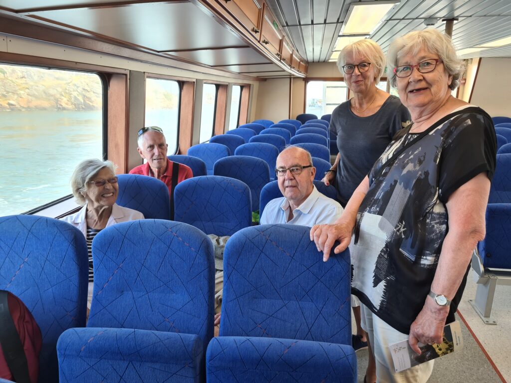 Gunnel, Håkan, Torsten, Birgit och Monica njuter av båtresan tor Saltholmen