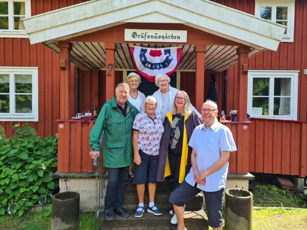 I regn och sol men skön värme så kallade logen till picknick i Slottsskogen för att fira USAs nationaldag söndagen den 4 juli. Denna dag är ju en av våra viktiga datum att markera i Vasa Orden. Nu när pandemin fortfarande råder och aktiviteter utomhus är att föredra så har området vid Gräfsnäsgården blivit logens tillfälliga hemvist. Vi hade extra tur denna gång då Gräfsnäsgårdens ”allt-i-allo” Thomas gav oss en guidad tur. Han berättade om alla aktiviteter som normalt äger rum på gården som folkdans, hemslöjd, vävstuga, snickeri och silversmide.